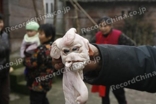 ・2008年2月24日、重慶市郊外の農村で、世にも奇妙な奇形のブタが生まれ、村中の注目を集めた。このブタは誕生後、数時間で死亡した。 ある農家で誕生した11匹の子ブタの中に混じってこの世に生を受けたこのブタは体長約30cm。ゾウのように大きな耳と、くっつきあって飛び出した大きな目玉、そして頭のてっぺんから長さ4~5cmのゾウのような鼻が突き出ていた。ほかのブタに特に異常はなく、地元の専門家によると、遺伝子異常か環境的外因、母体のウィルス感染などによる突然変異ではないかという。 農家の主人はその死骸を半分にわけ、ひとつは酒に漬け、ひとつは料理して食べるというから、さらに驚き…。 http://www.recordchina.co.jp/group/g16371.html ※写真(注意:ややショッキングです) http://www.recordchina.co.jp/imgout.php?m=2&img=cfp391754004.jpg http://www.recordchina.co.jp/imgout.php?m=2&img=cfp391754006.jpg 2 :名無しさん@八周年:2008/03/06(木) 11:16:19 ID:QoOtf9Sm0 見たいけど画像開けない・・・こわい・・・ 12 :名無しさん@八周年:2008/03/06(木) 11:18:46 ID:MgR23hR60 >>2 グロって感じではないが、ぐレムリンみたいなかわいらしいかんじがする。 せめてかわいいといってあげたい。こんあふうに生まれて死んだ赤ん坊豚を。。 でもひどいなこんなの突然変異じゃないだろ。 13 :名無しさん@八周年:2008/03/06(木) 11:18:48 ID:EzGImdhUO >>2 全然大したことないから平気だよ。 つか肉も付いてないし不味そう。。。 さすが支那w 8 :名無しさん@八周年:2008/03/06(木) 11:17:49 ID:VenmacRJ0 人面豚じゃね 11 :名無しさん@八周年:2008/03/06(木) 11:18:31 ID:wFUJannW0 豚面人じゃね 14 :名無しさん@八周年:2008/03/06(木) 11:18:48 ID:Z8sVtVX40 誰か写真の内容をソフトに説明してくれ 15 :名無しさん@八周年:2008/03/06(木) 11:18:52 ID:1OUaa4wE0 眼は単眼症になりかけみたいな感じだな。 つか、もう何がなんだかわからん。全身がプリプリの ミミガーのカタマリみたいだ。 16 :名無しさん@八周年:2008/03/06(木) 11:19:17 ID:3qyobTtA0 >>1 グロ過ぎだろよwwwww 17 :名無しさん@八周年:2008/03/06(木) 11:19:20 ID:iQCVnVwh0 なあ…ホントにこんな国でオリンピックやんの? 19 :名無しさん@八周年:2008/03/06(木) 11:19:49 ID:bxJXTm+A0 これをみて笑えるとか、ましてや食うなんてどんな神経してんだ 21 :名無しさん@八周年:2008/03/06(木) 11:19:55 ID:yPDThWBO0 画像は、毛を剃られて萎びれたギズモっぽいです。 キモぬいぐるみ風ね。 >地元の専門家によると、遺伝子異常か環境的外因、母体の >ウィルス感染などによる突然変異ではないかという 使えない専門家ですねw 25 :名無しさん@八周年:2008/03/06(木) 11:20:48 ID:8XXEgD/q0 これが豚?なんか顔がやたらでかいし足が変な方向向いてるし ヨボヨボの爺さんみたいな感じだな 26 :名無しさん@八周年:2008/03/06(木) 11:20:52 ID:hqj97BavO そもそもベースがブタっぽくない 27 :名無しさん@八周年:2008/03/06(木) 11:20:54 ID:IF9vg+s80 怖いので画像はみんが、体外へ排出されない毒も あるんだぞ… こんなことシナに言っても無理だろうけど 29 :名無しさん@八周年:2008/03/06(木) 11:21:27 ID:7wAQ3PuE0 日本で生まれてたら一週間は一面飾れるな 33 :名無しさん@八周年:2008/03/06(木) 11:22:08 ID:3qyobTtA0 サイクロプスの赤ちゃんっぽい顔だよな・・・ 34 :名無しさん@八周年:2008/03/06(木) 11:22:13 ID:XnFNw0+tO いわゆる単眼症か サイクロプスというよりは赤塚マンガに出てくる警官や目付きの悪い子供キャラみたいだ 40 :名無しさん@八周年:2008/03/06(木) 11:22:44 ID:ZYD6Yv9j0 これが中国食品を採り続けてるお前らの将来の子の姿だw 42 :名無しさん@八周年:2008/03/06(木) 11:23:04 ID:PPFR6pAk0 これが顔が変形して死亡する新たな伝染病により人類の7割4分8厘が死亡するきっかけになろうとはこの時誰も知るよしもなかった 43 :名無しさん@八周年:2008/03/06(木) 11:23:08 ID:xY9T/O0c0 北京オリンピックでも皆さんにお出ししますので楽しみにしてくださいw 44 :名無しさん@八周年:2008/03/06(木) 11:23:14 ID:nMRQgzBnO 画像見て食欲無くなった・・・ 45 :名無しさん@八周年:2008/03/06(木) 11:23:21 ID:PeBfZQ9O0 CGみたいだな…よくこれを食う気になるな… 53 :名無しさん@八周年:2008/03/06(木) 11:24:03 ID:wtTv59hi0 ( ゚パ ) ガタッ .r ヾ __|_| / ̄ ̄ ̄/_ \/ / ⊂( ゚パ ) ヽ ⊂ ) (⌒)| ダッ 三 `J 75 :名無しさん@八周年:2008/03/06(木) 11:25:53 ID:8XXEgD/q0 昼飯豚肉だったんだが 76 :名無しさん@八周年:2008/03/06(木) 11:25:57 ID:ozJbi05d0 ソーセージにすれば問題ないだろ 77 :名無しさん@八周年:2008/03/06(木) 11:25:58 ID:REc+K8W00 >地元の専門家によると、遺伝子異常か環境的外因、母体の >ウィルス感染などによる突然変異ではないかという まさか料理の専門家じゃねーだろうなw 83 :名無しさん@八周年:2008/03/06(木) 11:27:05 ID:0vQhFpaO0 何が怖いかって一枚目の写真の後ろで笑ってる男だろ! 何がおかしくて笑ってんの???? 84 :名無しさん@八周年:2008/03/06(木) 11:27:13 ID:JNNKMgvlO どんな形であれ、一つの命。今度、生まれてくる時は幸せであってほしい。 85 :名無しさん@八周年:2008/03/06(木) 11:27:16 ID:e2RpL3ik0 おでこから生えてるのは何? 耳なのかな? つか、中国ってホントすごい国だわ・・・ 93 :名無しさん@